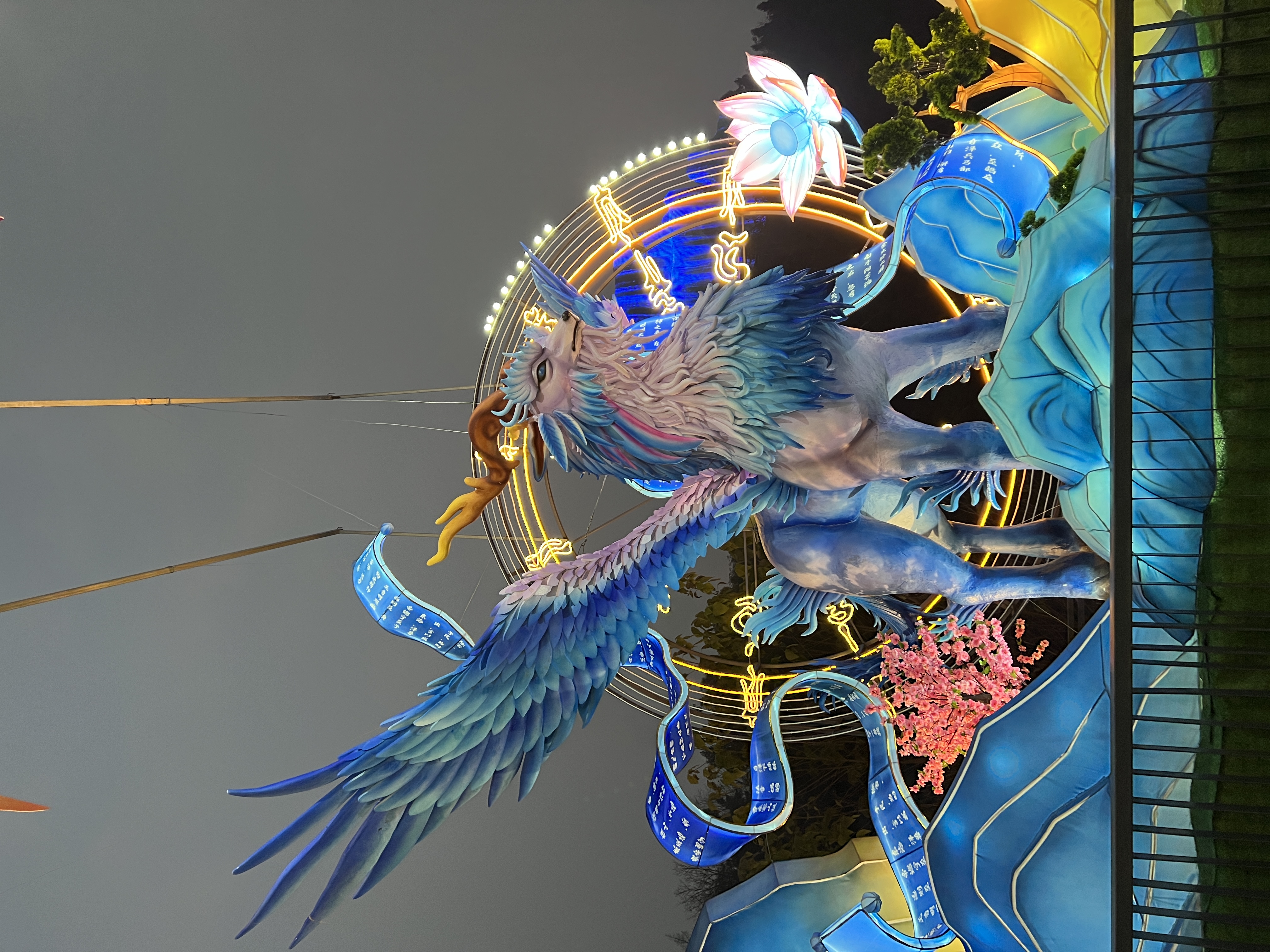 刘俊才介绍,青花瓷、药瓶并非首次出现在灯会,但这次他们对捆扎方法进行了测试、创新,使其表现力更强,神兽的形象更加栩栩如生,“由于青花瓷种类达到10余种,形状不规则,制作难度较大,需要非常有经验的彩灯工匠。”